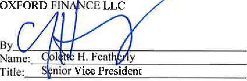 OXFORD FINANCE LLC, as Collateral Agent and Lender SILICON VALLEY BANK, as Lender |